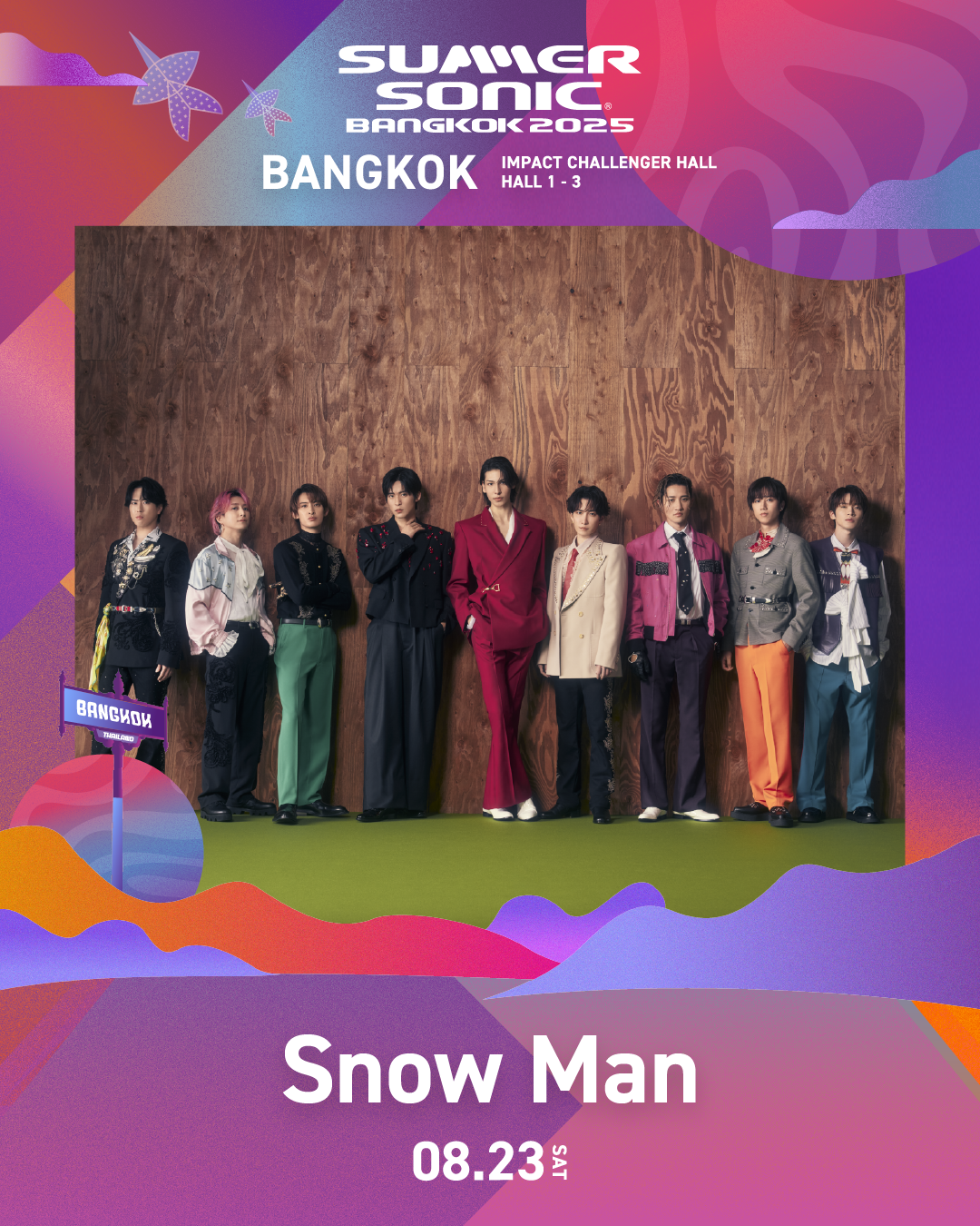 今回のステージでは、世界レベルのダンスと歌、そして個性あふれるパフォーマンスで、会場を熱く盛り上げます。Snow Manと一緒に、真夏のバンコクで忘れられない体験を!詳細は公式SNS「Summer Sonic Bangkok」をチェック!
