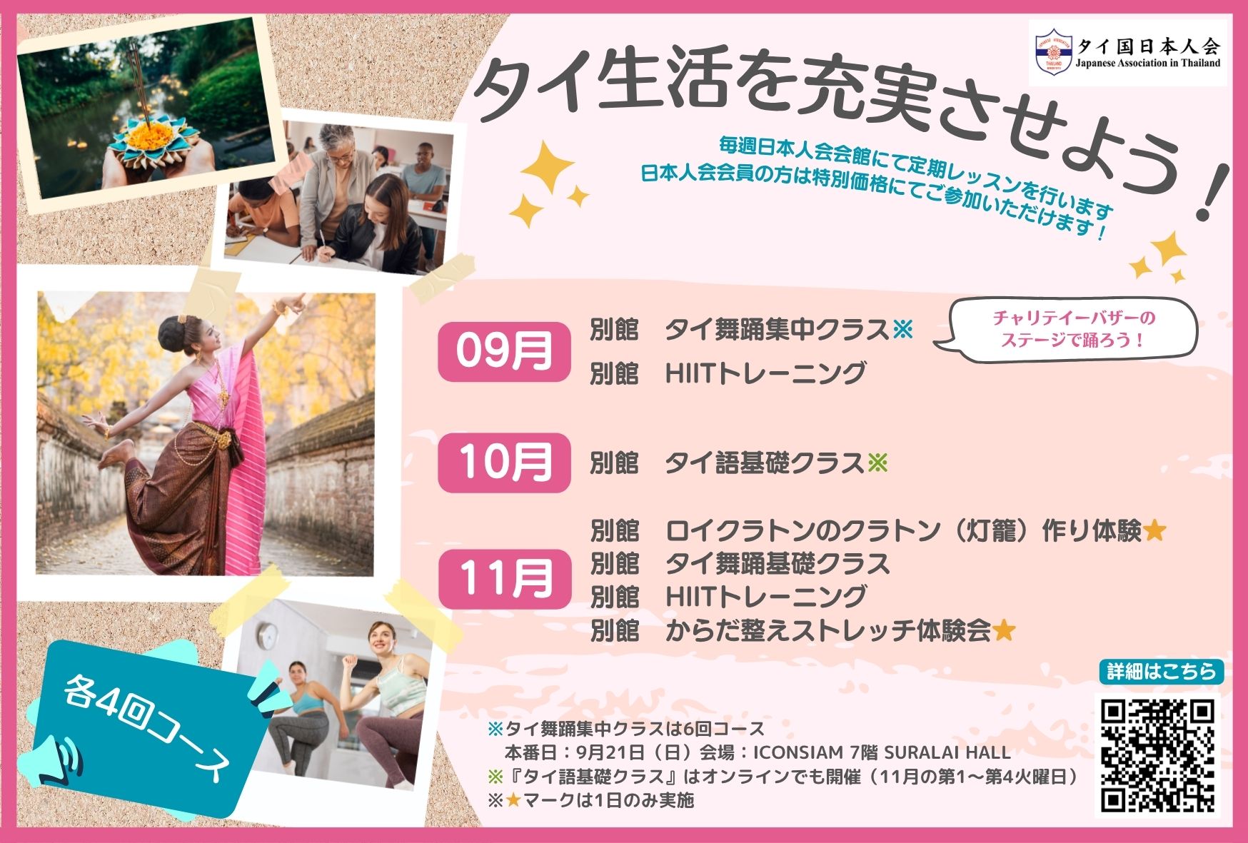 【9~11月】日本人会主催 定期レッスンのお知らせ ※11月プログラム追加