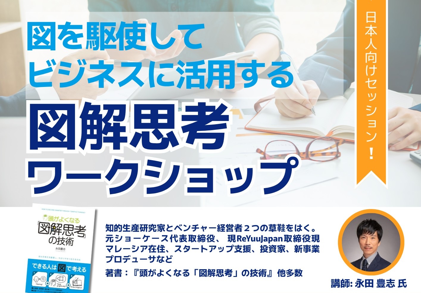 著書『頭がよくなる「図解思考」の技術』で知られる永田豊志氏が、日本人ビジネスパーソン向けにタイ・バンコクで初開催。