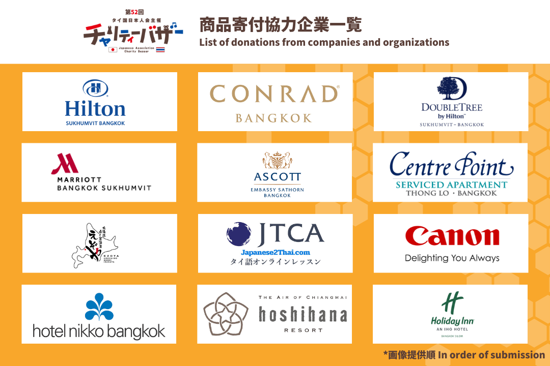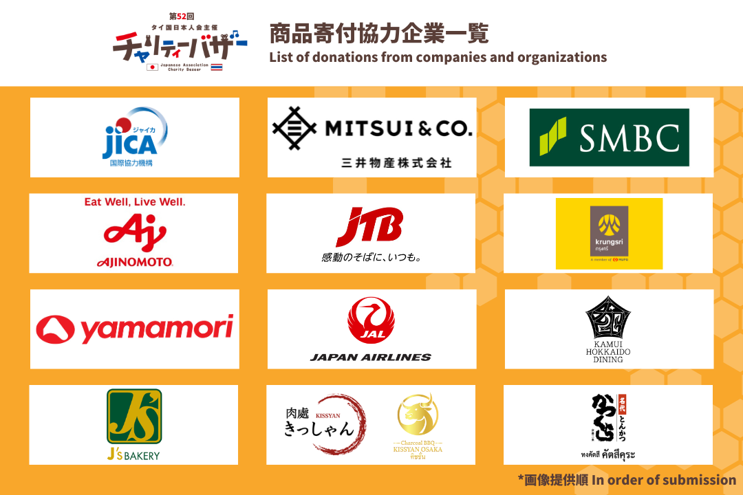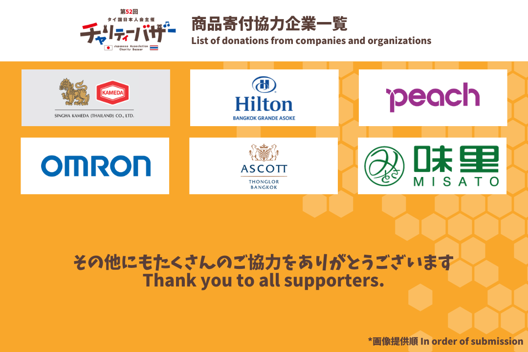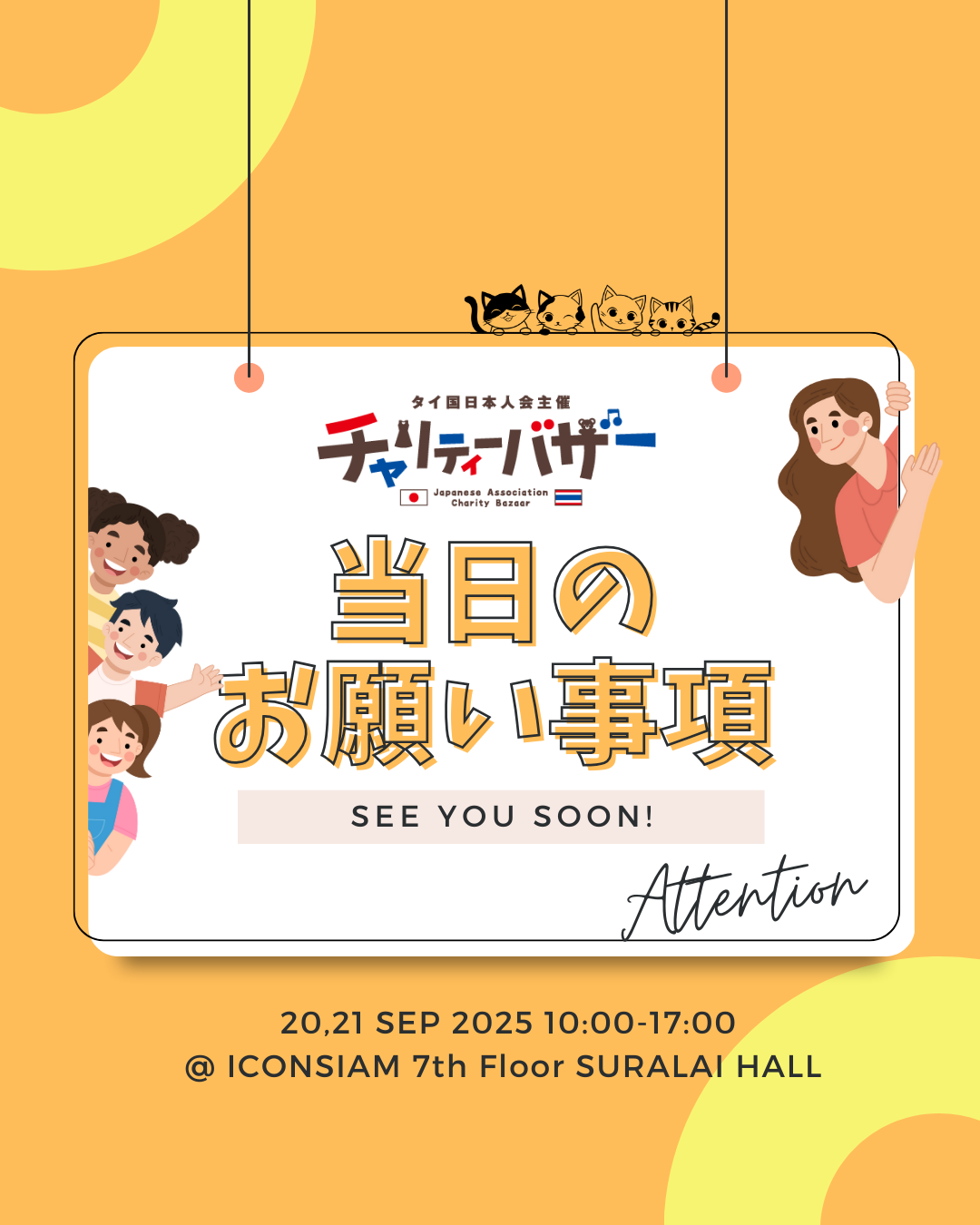 *バザーでの純益金は、タイ国日本人会チャリティー基金を通し、タイ国内の福祉施設や孤児院、障がい者施設、奨学金としてタイ社会へ還元されます。