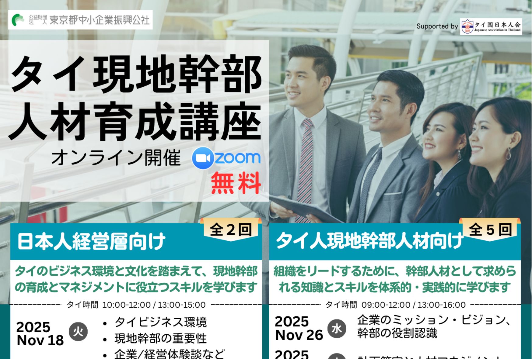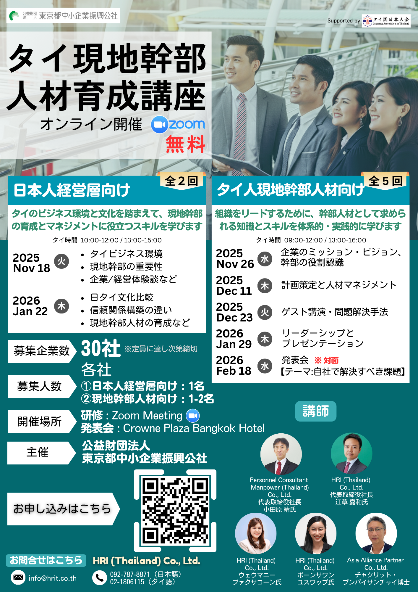 【後援イベント】東京都中小企業振興公社×HRI (Thailand)『タイ現地幹部人材育成講座』