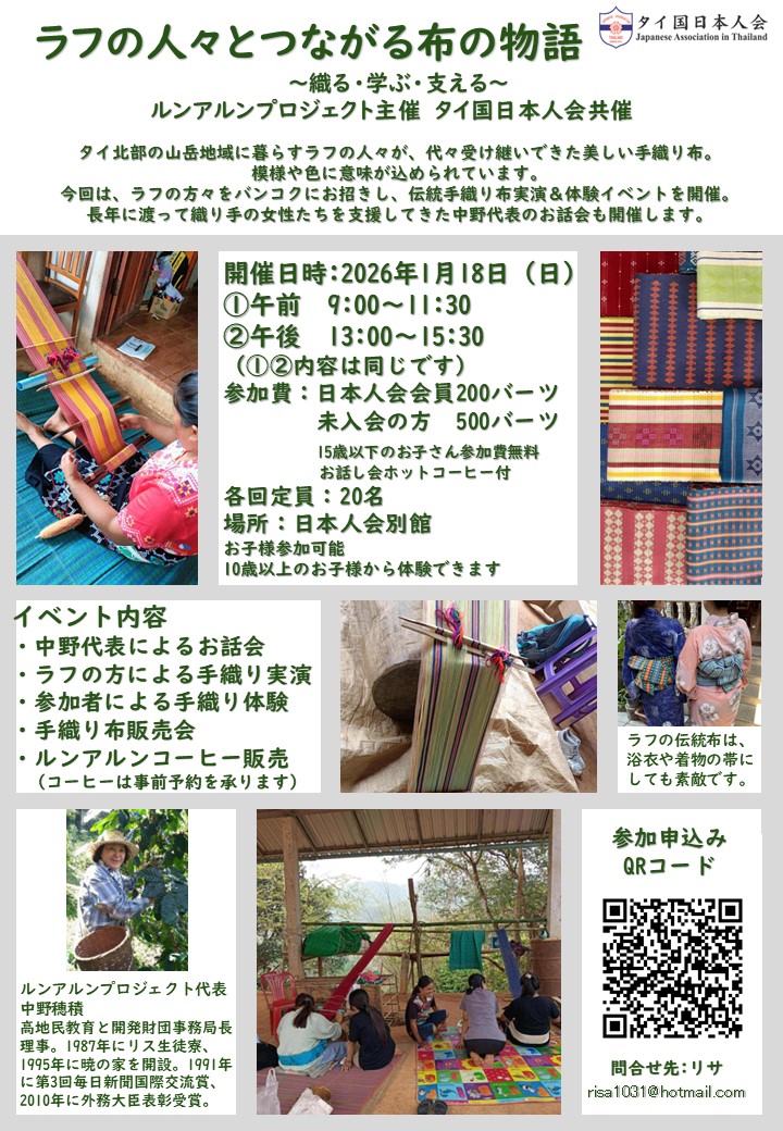 【共催イベント】1/18(日)ルンアルンプロジェクト主催ラフの人々とつながる布の物語~織る・学ぶ・支える~