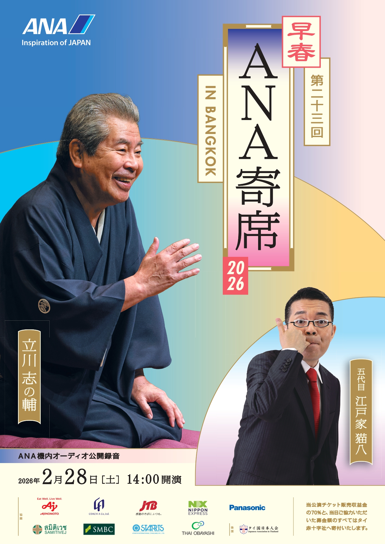 毎年ご好評をいただいている「ANA寄席」が、2026年早春、バンコクにて開催されます。