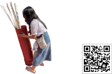 背丈ほどあるおみくじ筒を振って運勢を占う