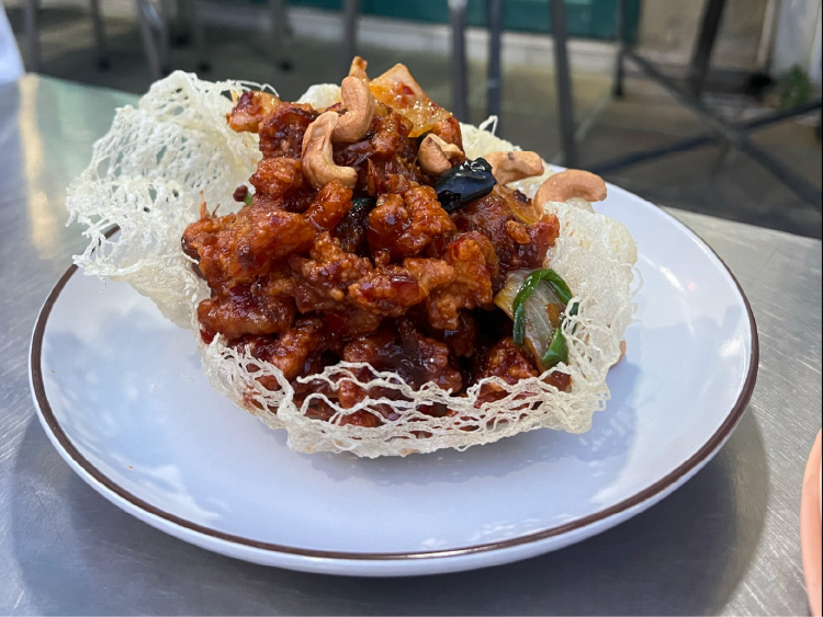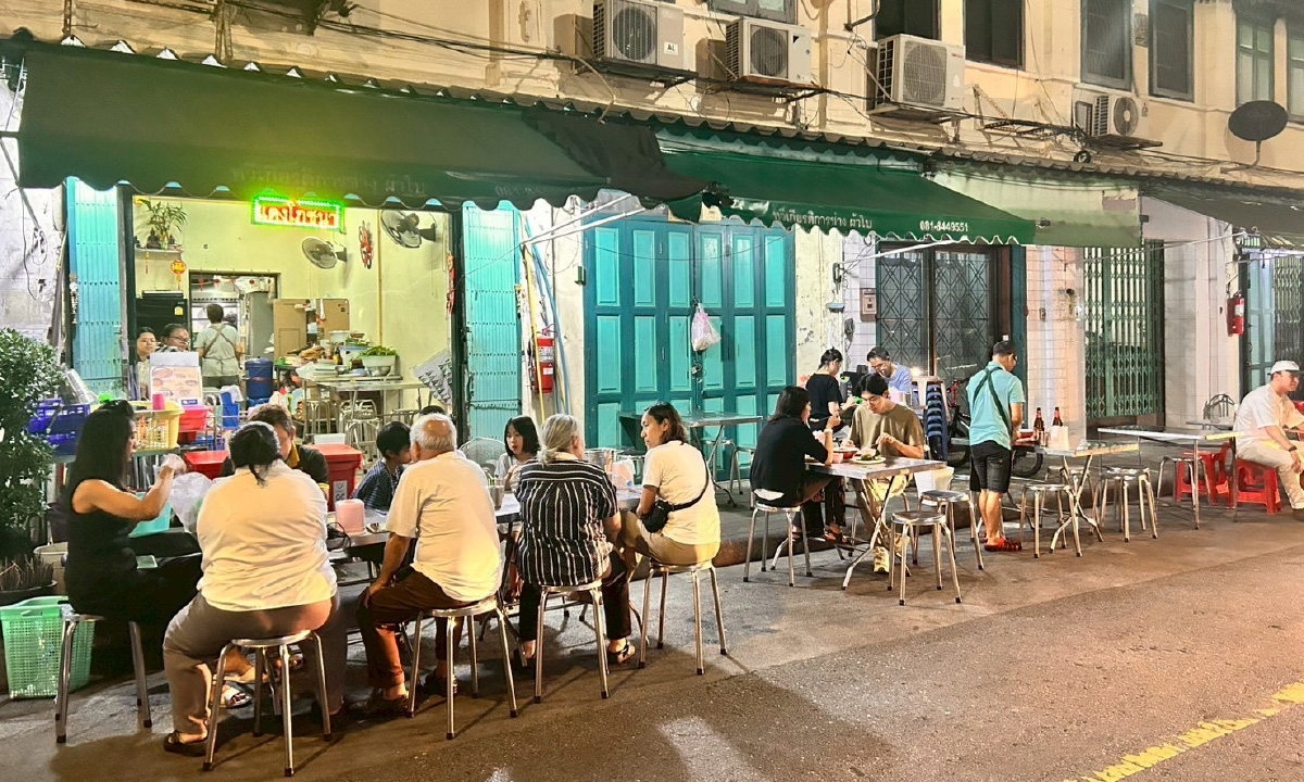 サムヨードの白い壁に緑色のドアが印象的な街並みの中にあるローカルタイ料理屋。撮影場所から10メートルほど離れた場所にありますが、こちらのお店が料理を提供していたそう。地元のタイ人を中心にいつも賑わっています。個人的なおすすめは鶏肉とカシューナッツ炒め!味よし、雰囲気よしでドラマの2人のように行きつけにしたくなるお店です。