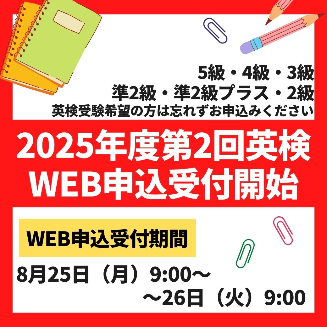 2025年度第2回英検 Web申し込み受付 ※締め切りました