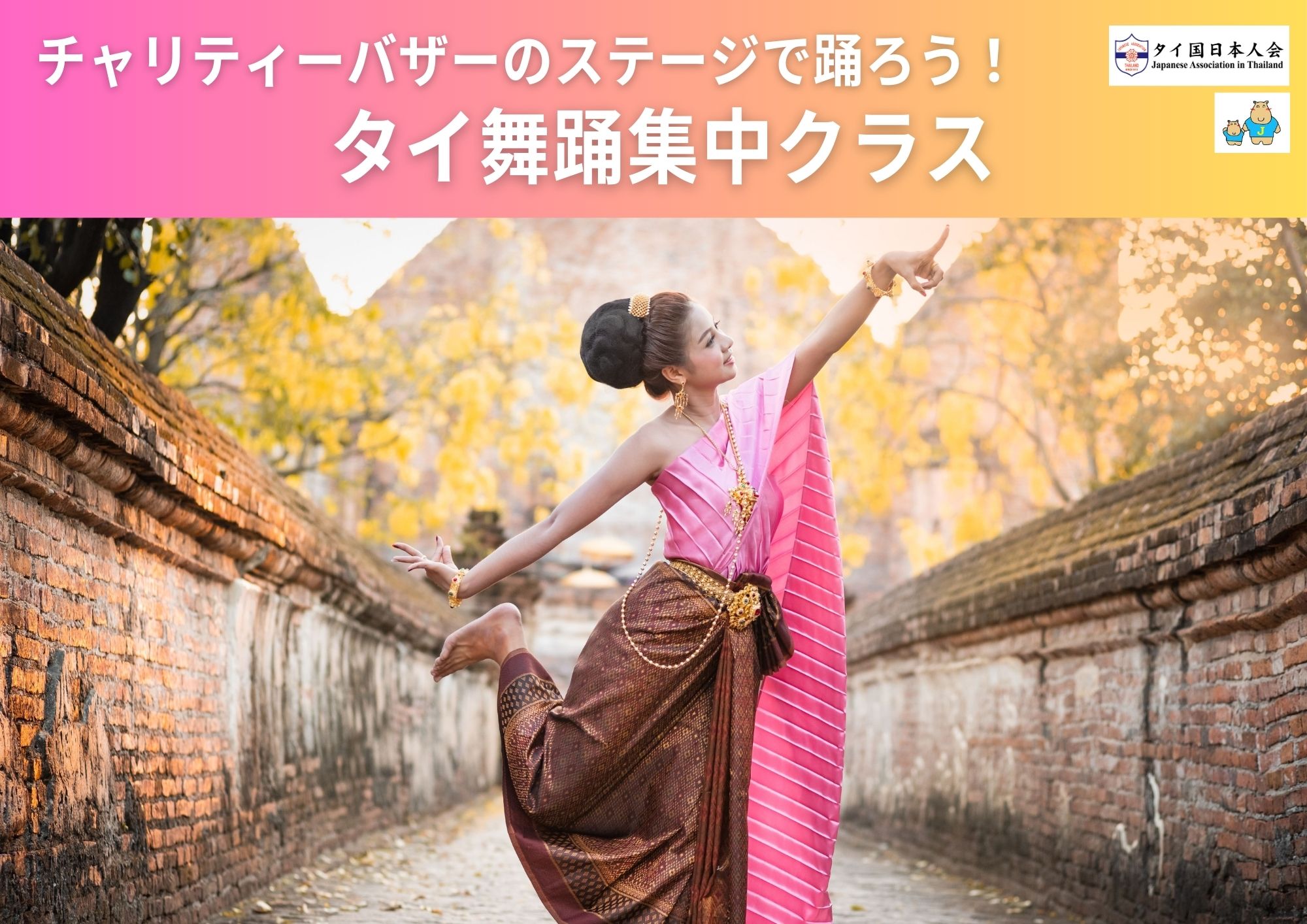 9月にICONSIAMにて開催する日本人会主催のチャリティーバザー内のステージにてタイ舞踊を披露することを目標とした短期集中型のクラスを開催します!