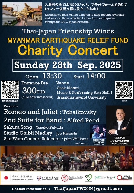 【後援イベント】9/28(日)TJFWミャンマー地震義援金チャリティーコンサート2025