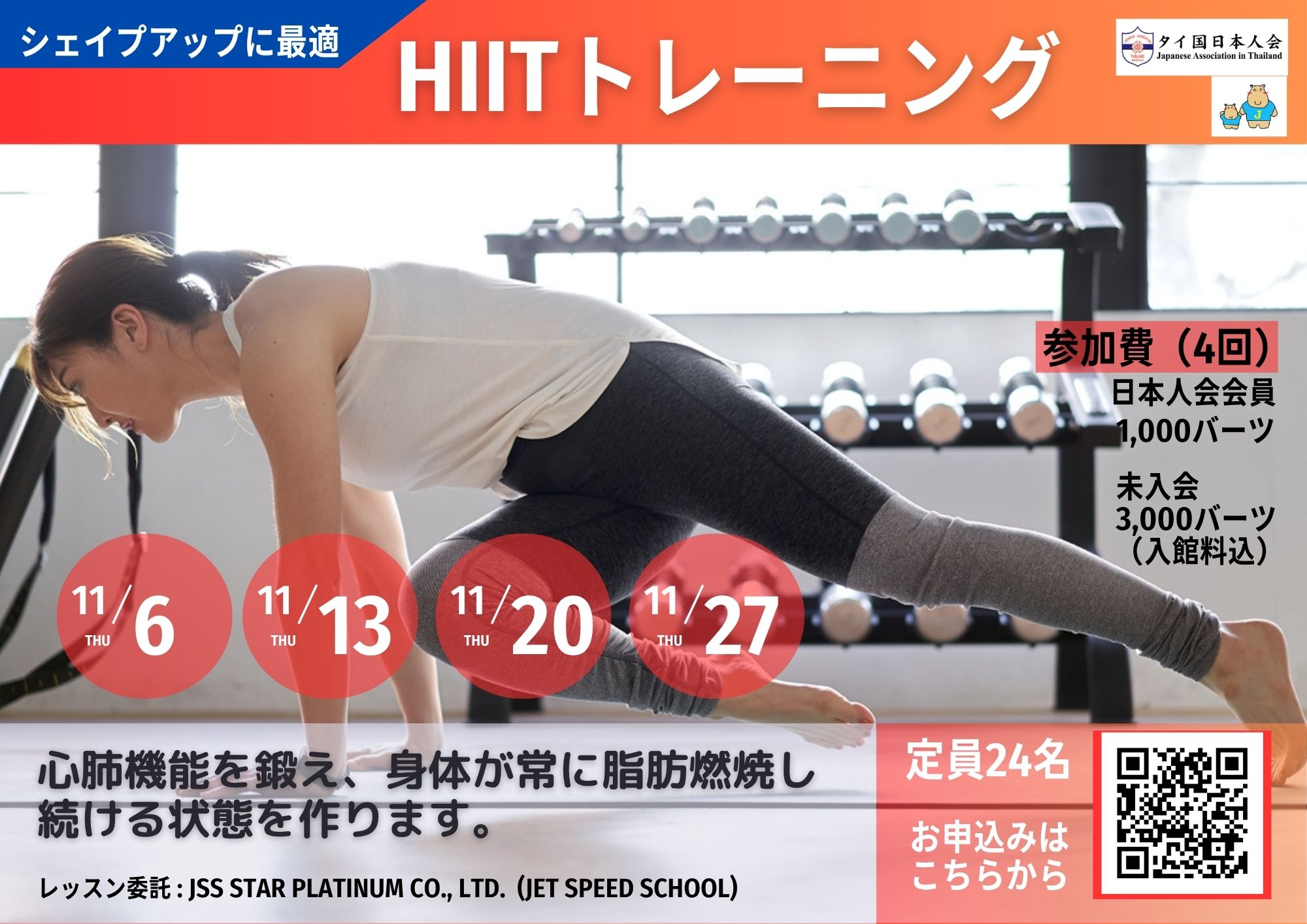 ※休止となった9月のHIITトレーニング申し込み者を優先受付した関係で10月9日12:00時点で残り13枠となります。