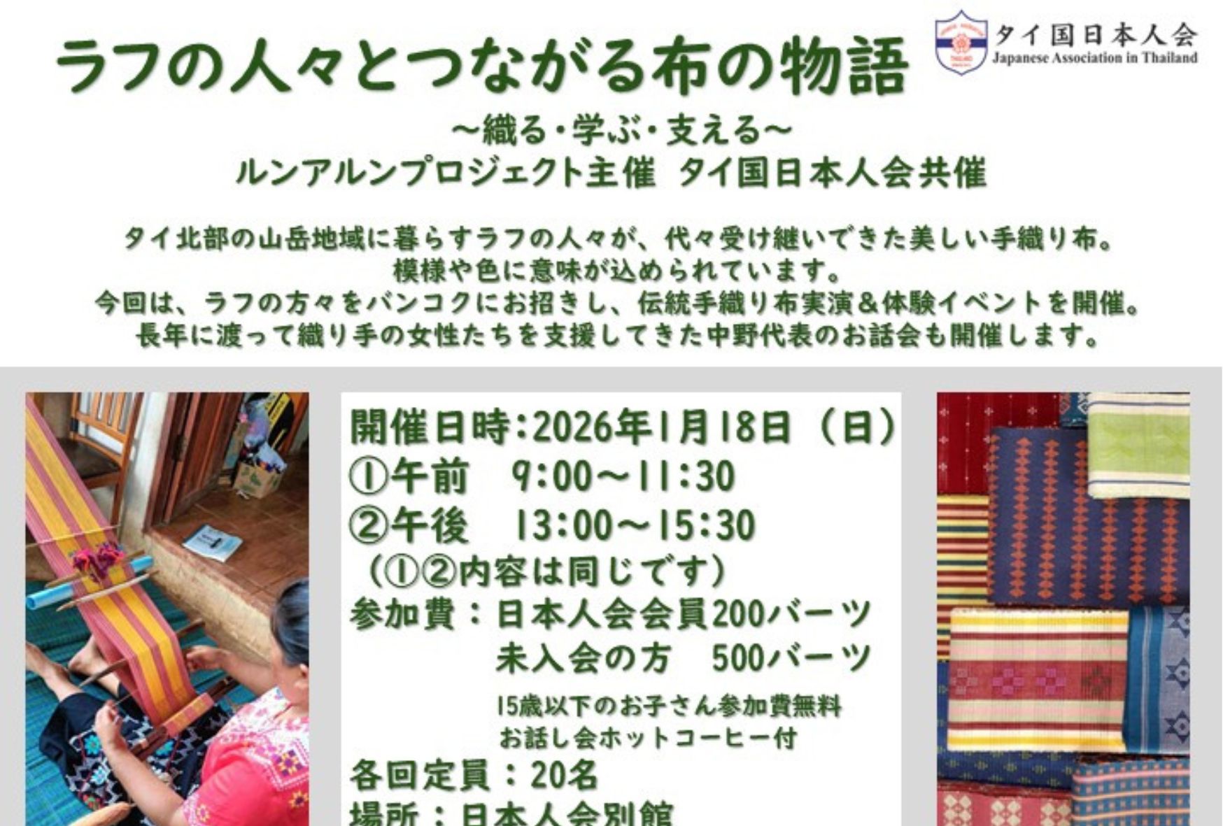 【共催イベント】1/18(日)ルンアルンプロジェクト主催ラフの人々とつながる布の物語~織る・学ぶ・支える~