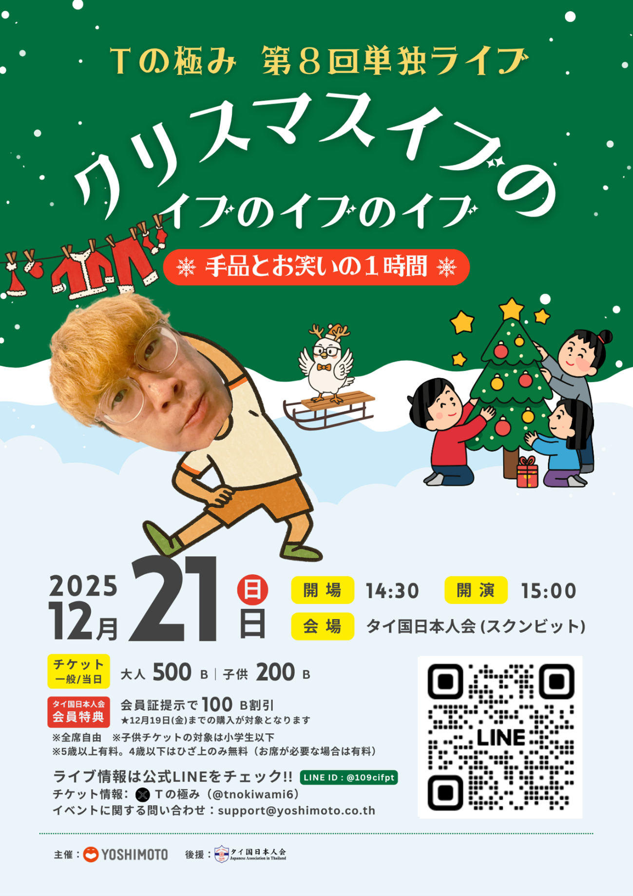 【後援イベント】12/21(日)Tの極み 第8回タイ単独ライブ『クリスマスイブのイブのイブのイブ』~マジックとお笑いの1時間~