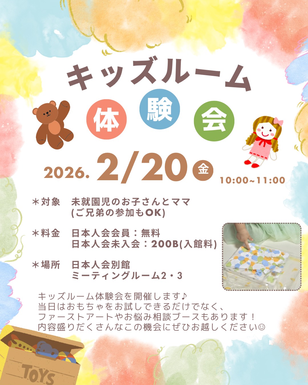 【すくすく会】2/20(金)キッズルーム体験会