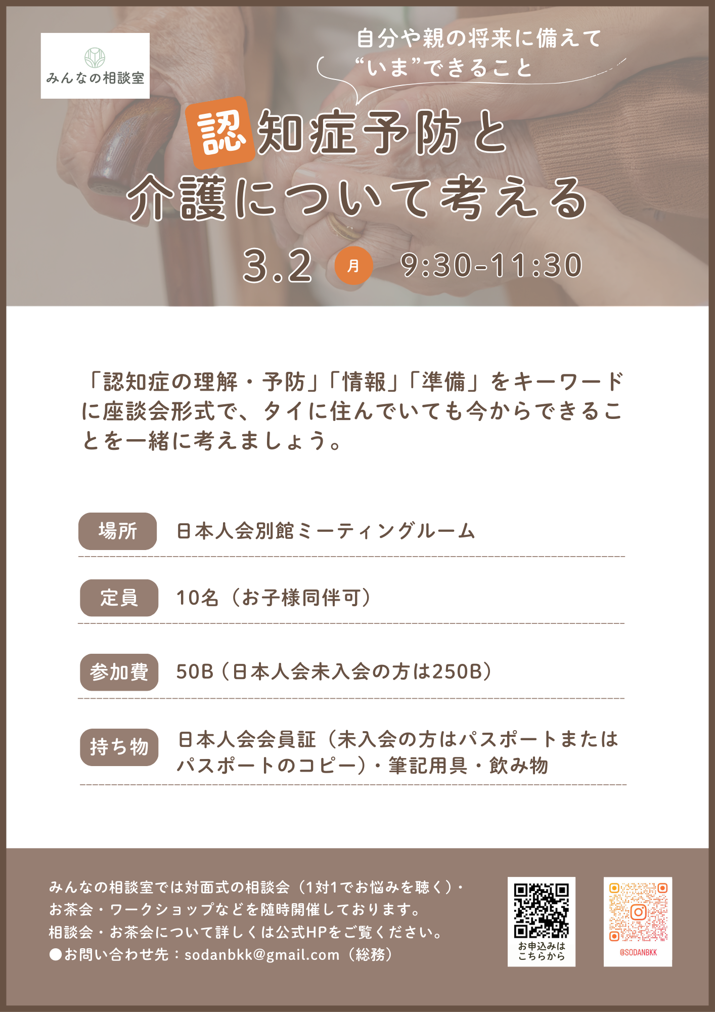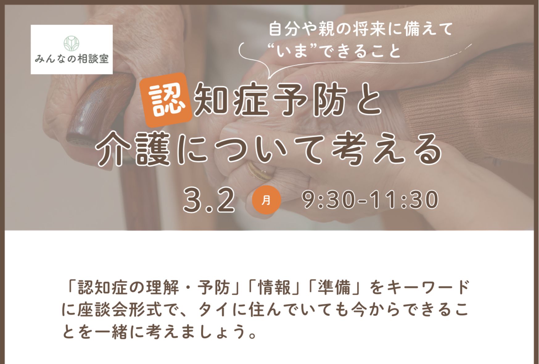 「認知症の理解・予防」「情報」「準備」をキーワードに座談会形式で、タイに住んでいても今からできることを一緒に考えましょう