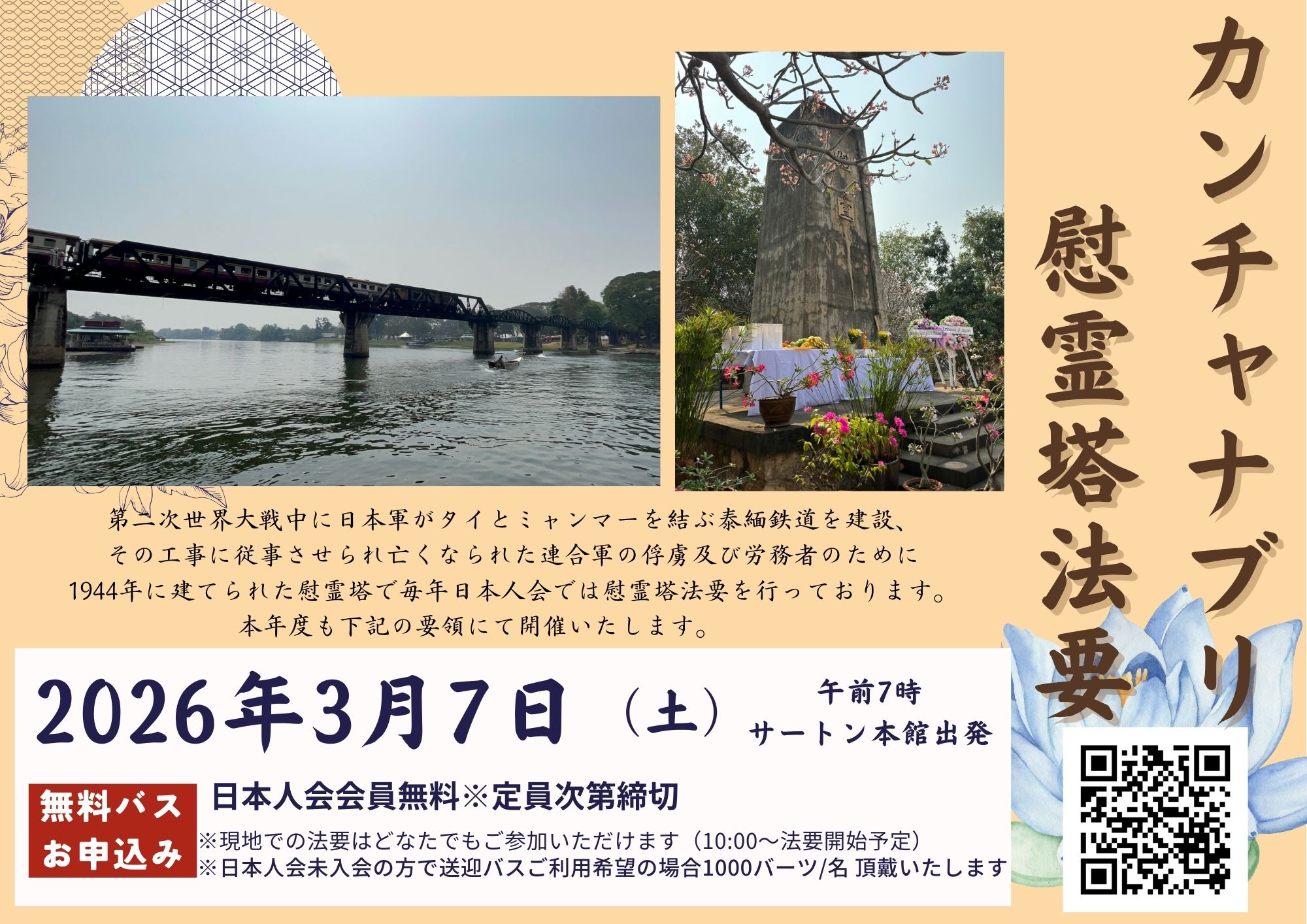 カンチャナブリ慰霊塔法要のお知らせ2026年3月7日(土)