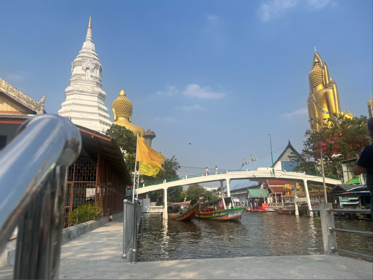 ワットパクナム南側にある船着き場。大仏や船で移動するローカルの人たちの生活をのぞき見できます。ドラマでは、Achiがこの場所で初めて心の声が聞こえることに気づく場所でもあります。ロングテールボートに乗ってワットパクナムに行くツアーなどもあり、船で通勤するAchiの気分を味わうことができます。