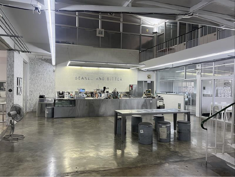 50年以上前に建てられた製薬工場をそのまま使っていて、当時の雰囲気を活かし研究所風のカフェとなっています。ドリンクもビーカーに入っていて、ピックアップ場所ではドライアイスで演出というのもドラマと同じで大興奮!ワーキングスペースとしておしゃべり禁止の部屋もあって作業するにもおすすめです。