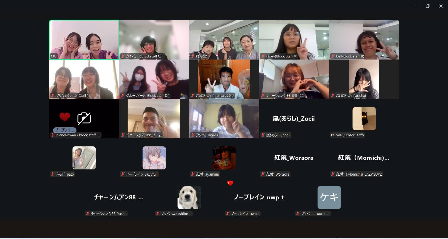 今年も、北はチェンマイ、南はハジャイからご参加の日本人3名、タイ人61名、総勢64名の皆さんにオンラインによる競技かるたを楽しんでいただきました。